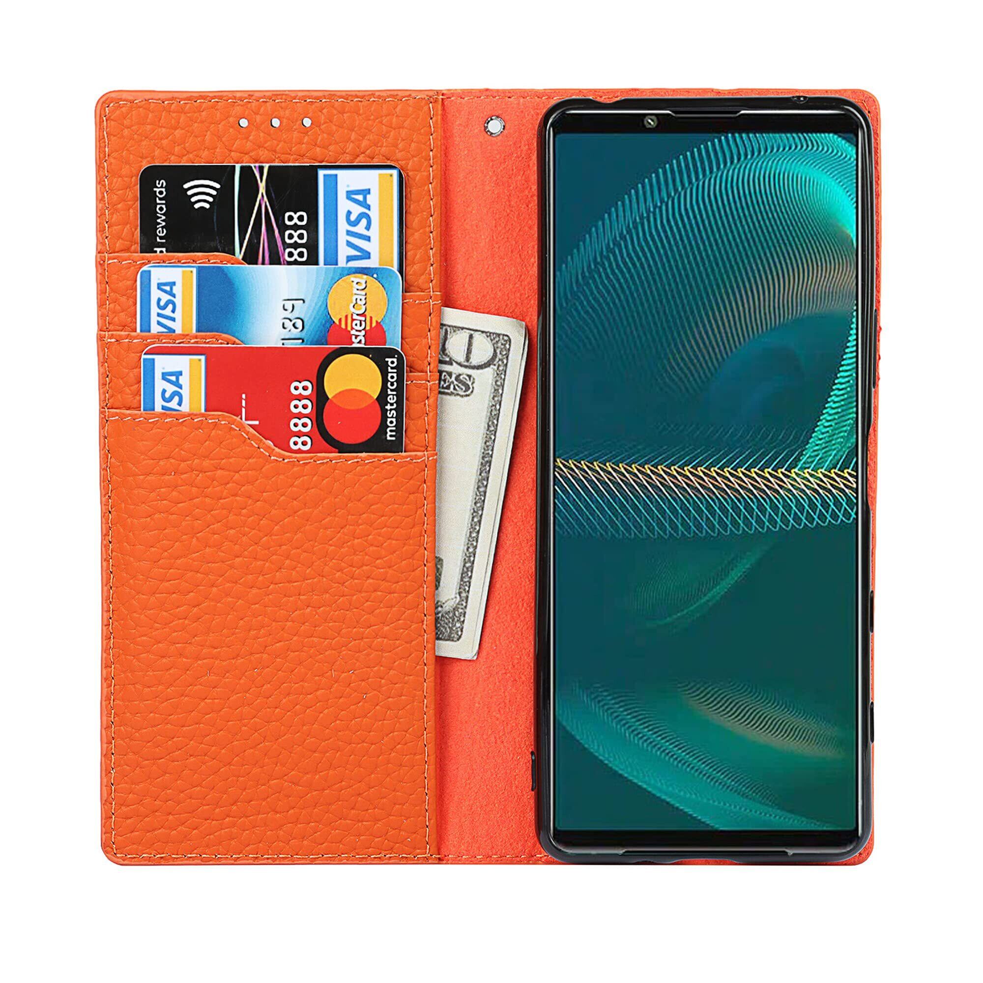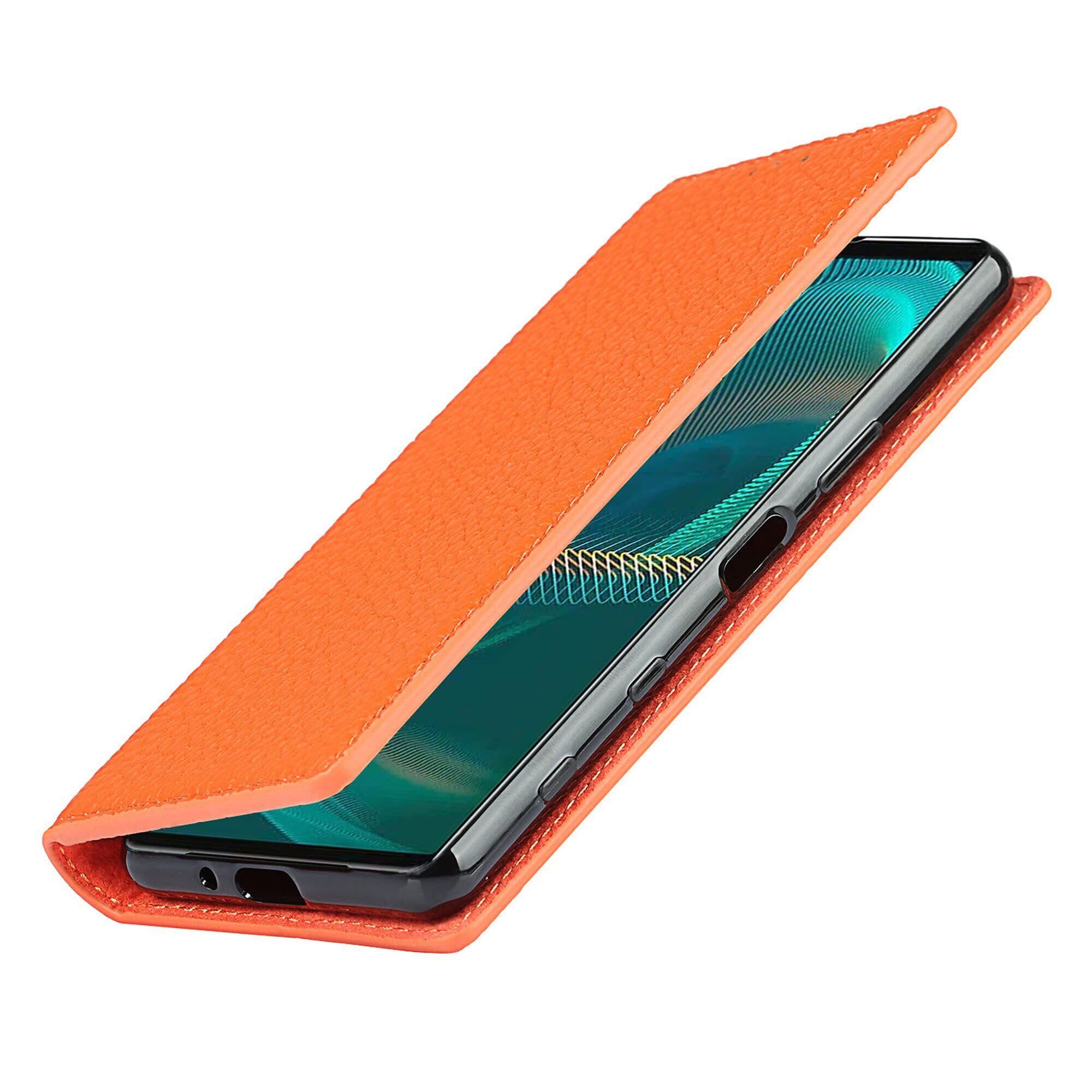Xperia 5 III SO-53B SOG05 ケース 手帳型 カバー ソニー エクスペリア 5 iii 手帳ケース xperia 5 iii case Zouzt 牛革 本革レザー 本皮 ストラップ付き ヘッドフォンケーブルベルト付き 財布型 カード収納 スタンド マグネット 耐衝撃 おしゃれ 6色 オレンジ