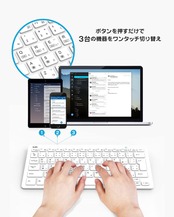 【最大3台のマルチペアリングに対応&Bluetooth5.1規格】在宅ワーク リモート 在宅勤務に適用! パソコンやタブレット、スマートフォンなど、最大3台までのデバイスをペアリング可能です。 ワンタッチで使用機器を切り替えることができるマルチペアリング機能付きです。 Bluetoothに対応したパソコンやタブレットであれば、レシーバ無しで接続できます。 専用ドライバなどのインストールは不要で、ペアリングするだけですぐに使用可能です。 iPadシリーズ、iPhoneシリーズに対応したBluetoothキーボードです。