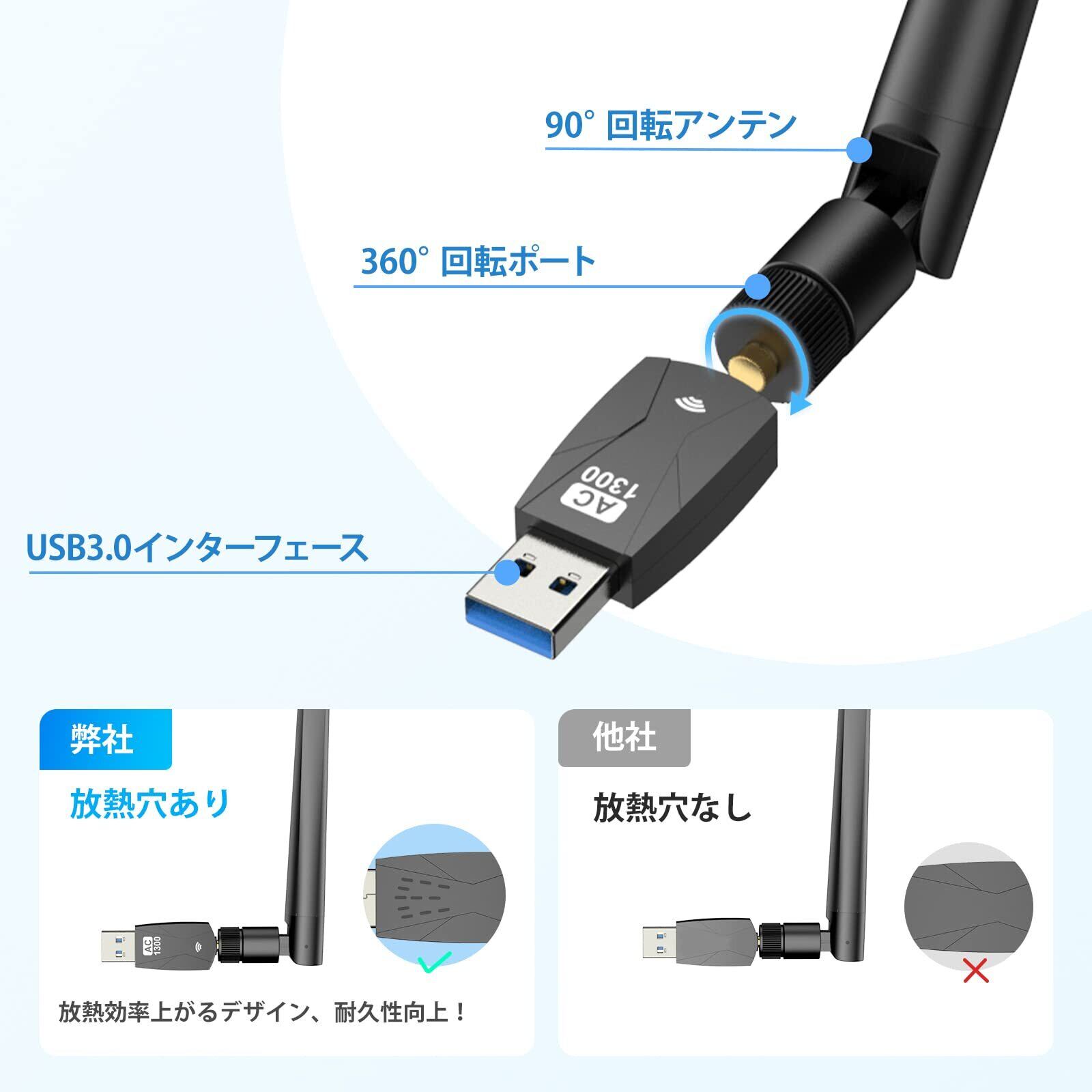 【在庫処分】1300Mbps usb USB3.0 無線lan 子機 2.4G/5G wifi デュアルバンド 5dBi超高速通信 wifi 子機 2022 360°回転アンテナ Windows11/10/8/7/ XP/Vista/Mac OS対応 KIMW | Synergia