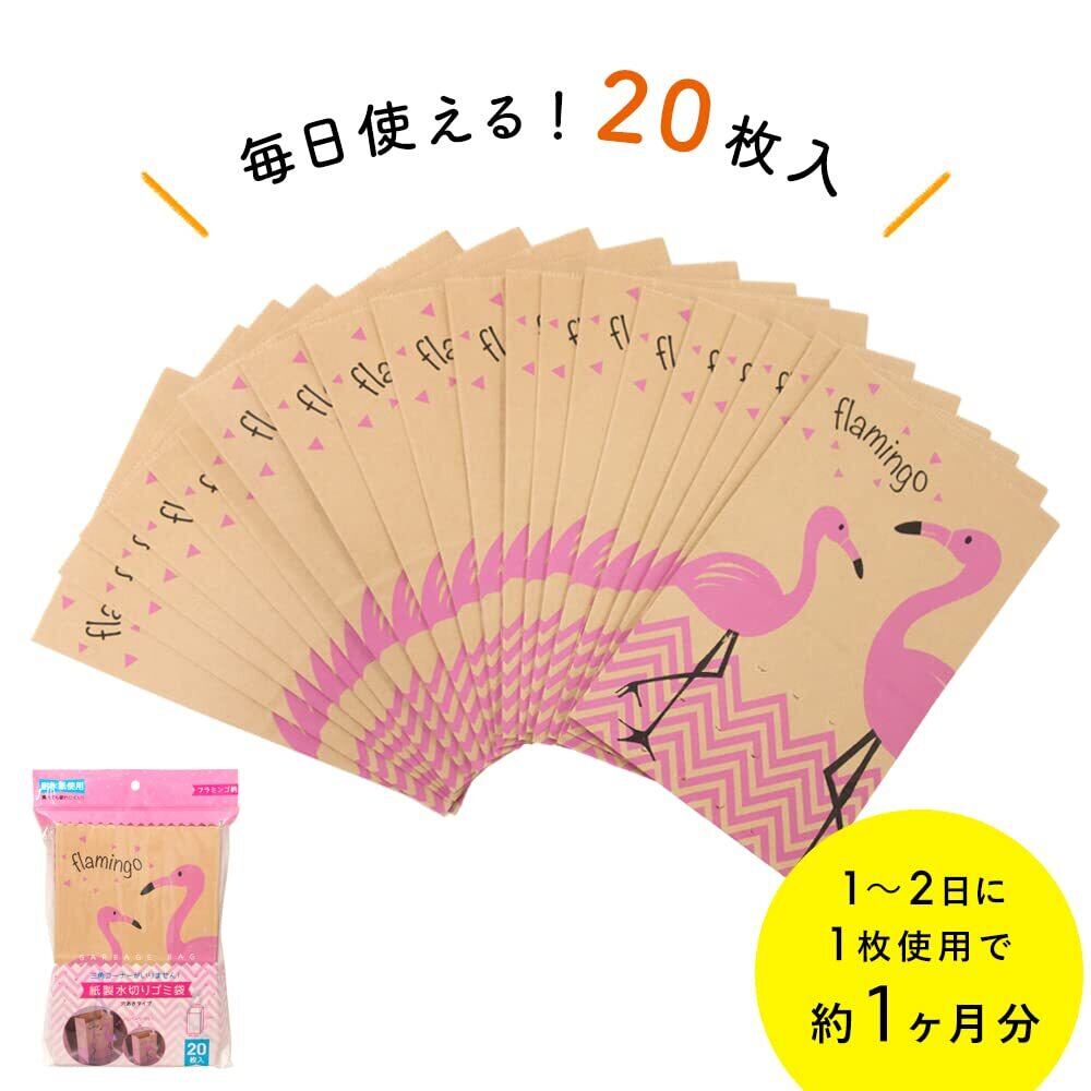 ネクスタ 紙製 水切り ゴミ袋 20枚入 フラミンゴ柄 日本製 三角コーナー いらず 約縦20×横13×マチ9cm 本体サイズ:約縦20×横13×マチ9cm