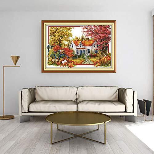 【在庫処分】クロスステッチ刺繍キット「 春夏秋冬 四季 」 図柄印刷 初心者 風景 刺繍糸 針 布 14CT Cross Stitch ホームの装飾 68×48cm ホームの装飾 (秋) | Synergia