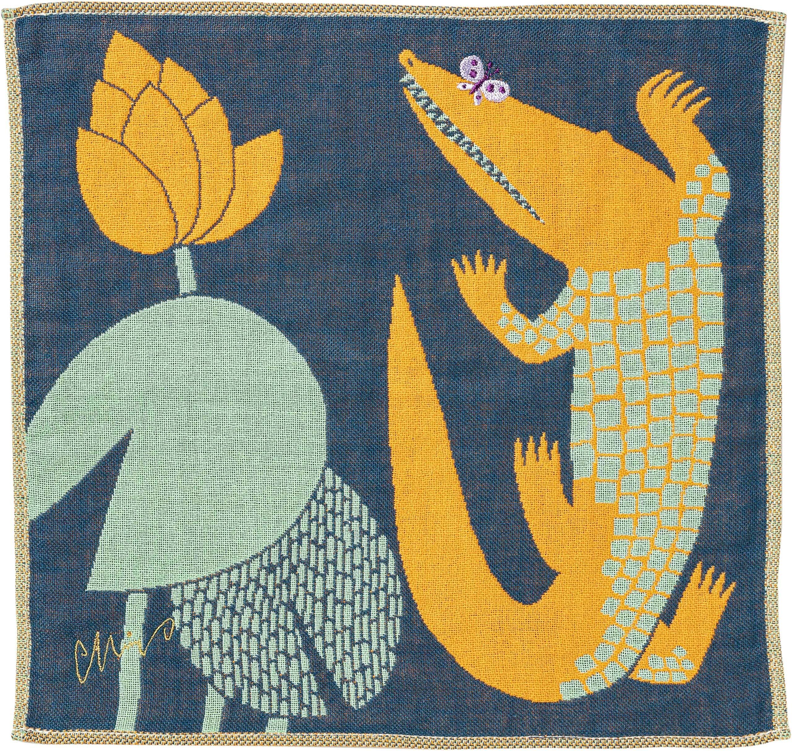 楠橋紋織 【moritaMiW】 3重ガーゼハンカチ ワニと蝶々 紺 【A-67262-86-KON】