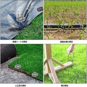 「固定できる対象」人工芝、防草シート、ビニールマルチ、農業用防虫ネット、不織布、キャンプの時テントの固定ピン等、地面に設置・固定としておすすめします。