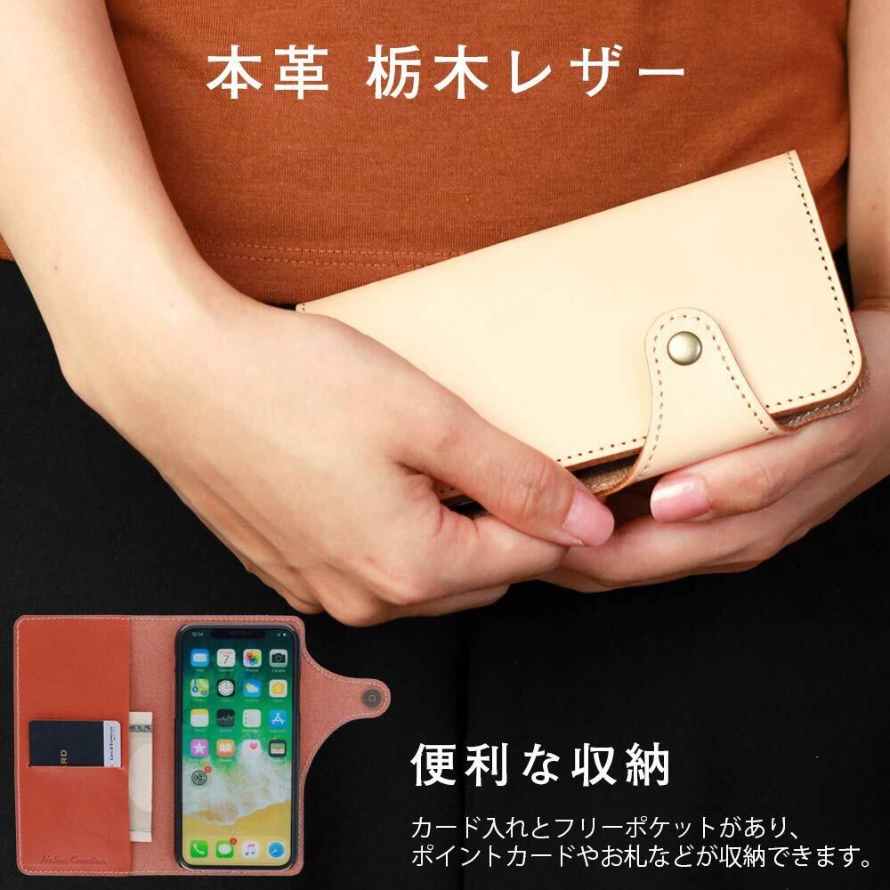 ・栃木レザーで造りあげた手帳型スマホケース。 シンプルながらも確かなクオリティ。ケースを付けたままLightning コネクタへのアクセスが可能でとても便利。スピーカー部分も覆われてないので、アラームや着信音も明瞭に聞こえます。カード・メモやお札も入るマルチポケットを装備。使えば使いこむほどに本革の味わい深い経年変化が楽しめます。