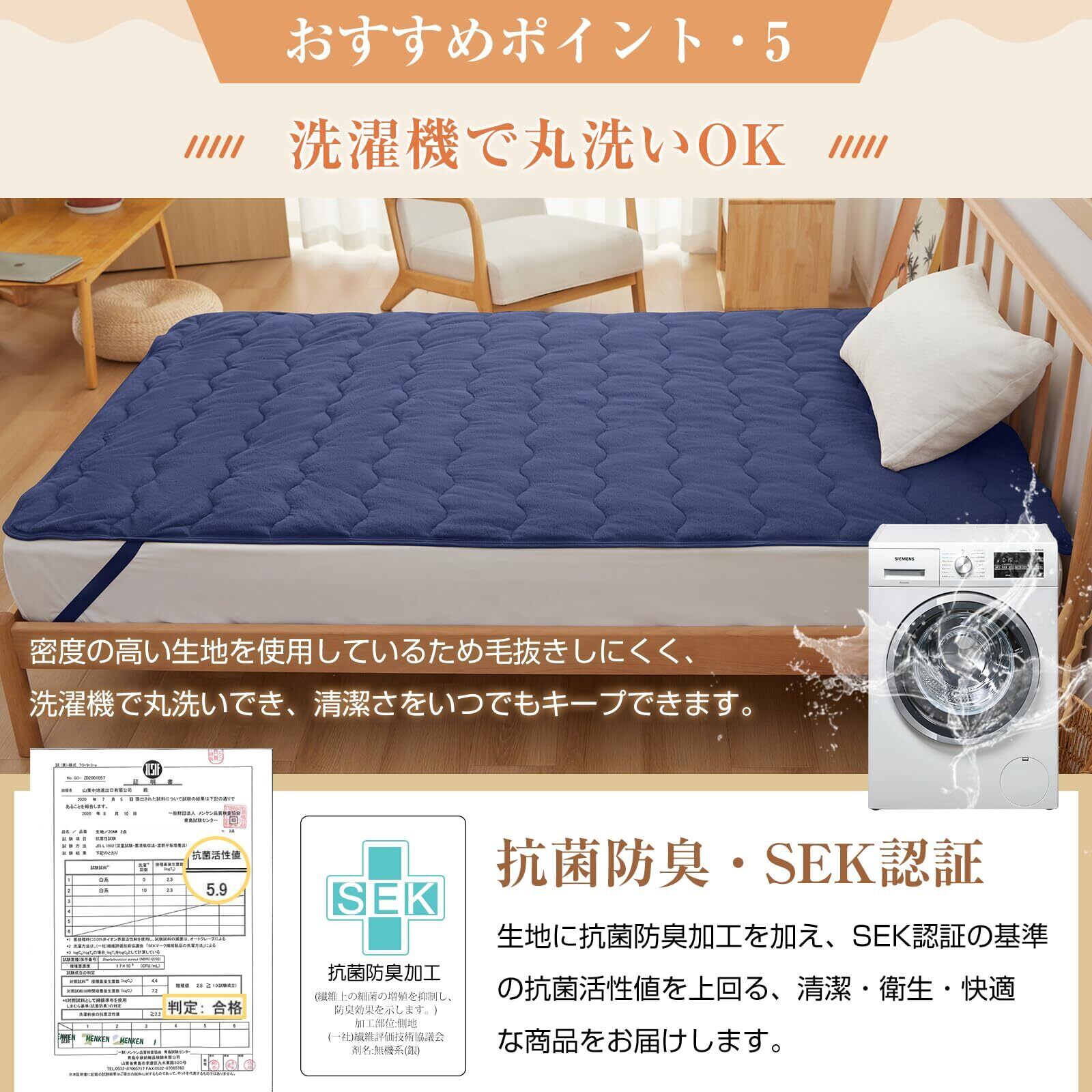 【ボア敷きパッド仕様】サイズ:キング 180*200cm。表地:ボアプレミアムフランネル生地(ポリエステル100%) 中綿:ポリエステル 100%(帝人抗菌防臭綿含み)。 裏地:ピーチスキン生地(ポリエステル100%)四隅強化ゴム付き:簡単に取り付けます。