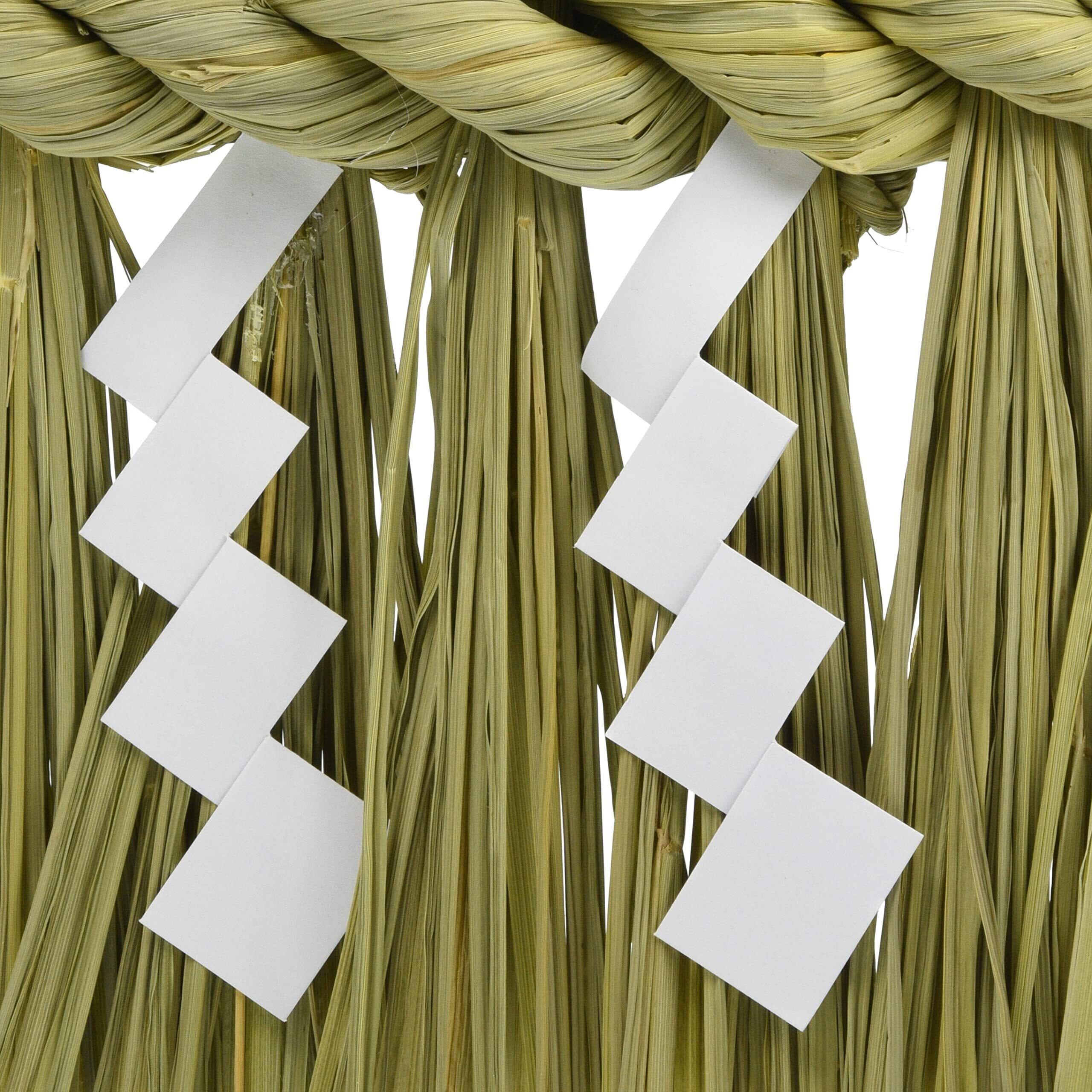 主に北陸の米どころ新潟を中心に神棚用しめ縄として、「大黒〆(だいこくじめ)」と呼ばれご愛用されております。この地域では特に神棚を大切に祭る風習があり、しめ縄からの下げわらを雨、ヘイソクを雷に見立てます。 また、米どころの地域の特徴としてしめ縄の上部には稲穂を取り付け、五穀豊穣を願う人々の表れを表しています。 本年は、古くから五穀豊穣を祈り大切にされてきた大黒〆を飾ってみてはいかがでしょうか? 新潟地区以外ではなかなか手に入らない一品です。