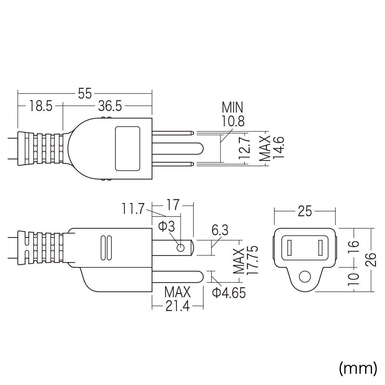 ■プラグ:3P(3P→2P変換アダプタ付き)