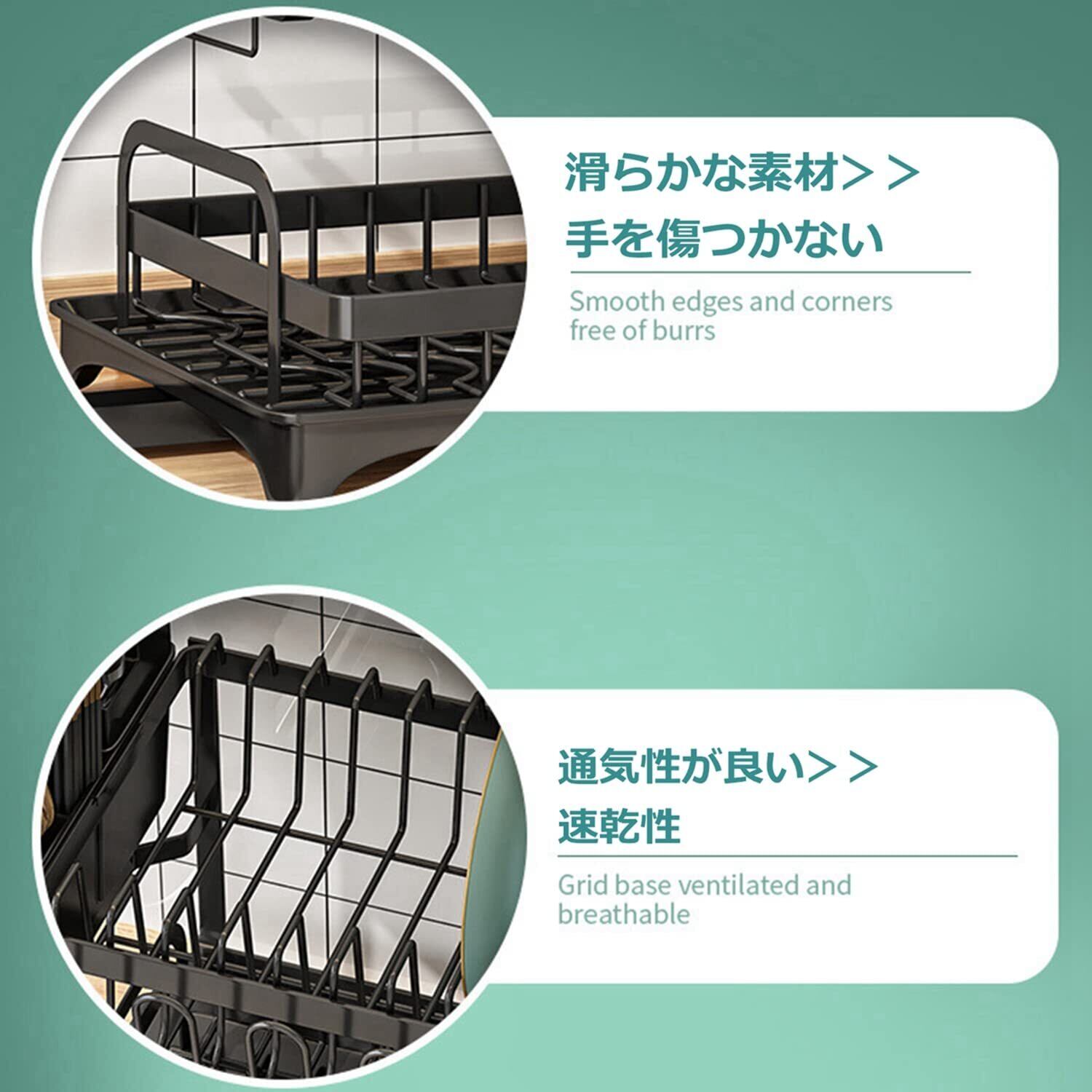 【在庫セール】水切り 食器 食器棚 大容量 水切りかご スリム 2段 シンク上 コンパクトまな板受け付き 水切りラック 幅42*高さ29*奥行29cm Fainyearn ブラック | Synergia