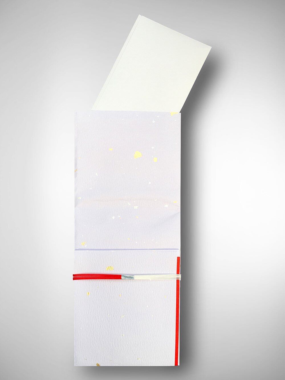 書き方の一例として、右のマスに目録とし、中央に品名、左に年月日と社名や氏名などを記入。用紙のサイズは19.7×39.4センチ。使用方、用途などはこれに限らず、地域・風習に合わせ使用する。
