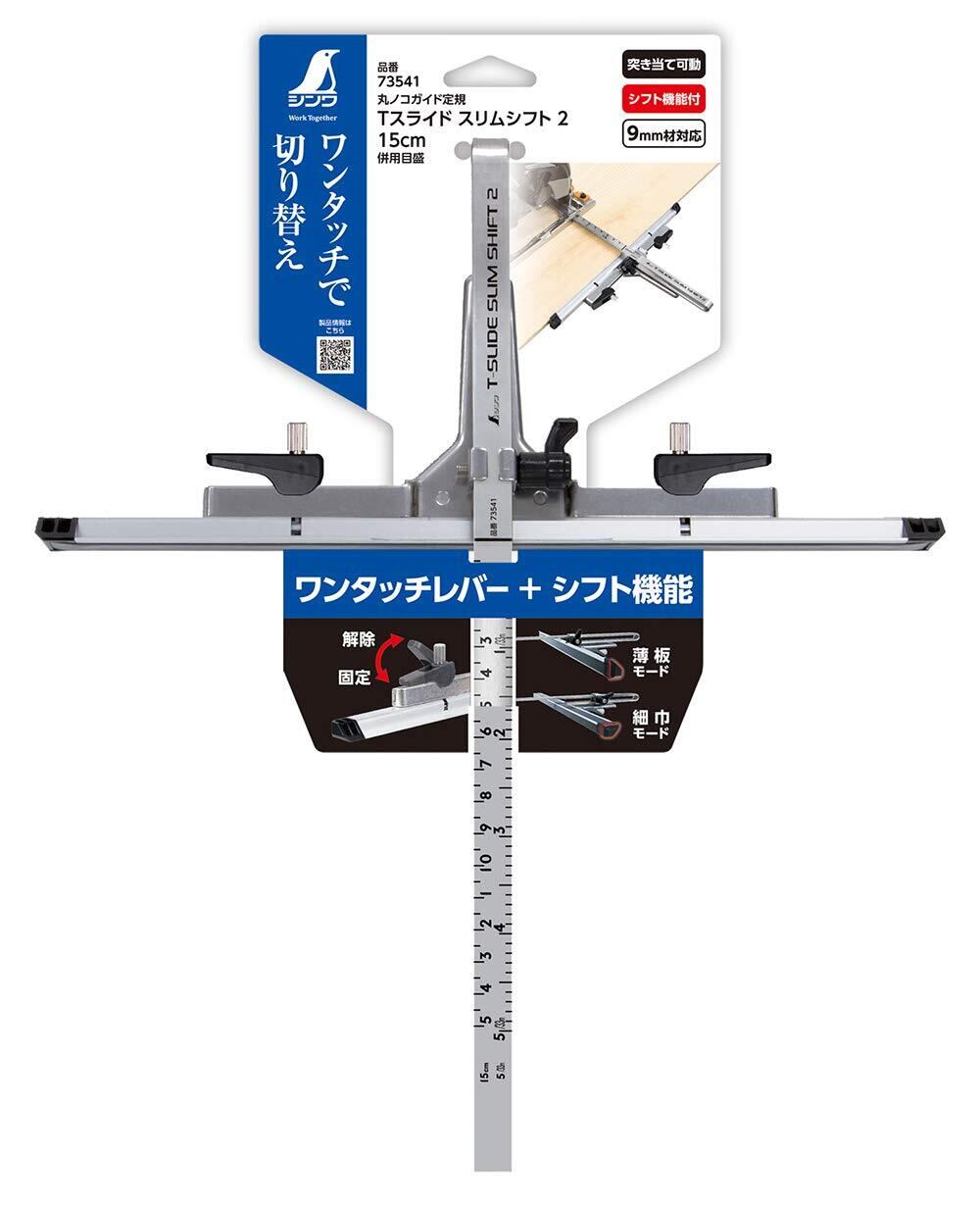 シンワ測定(Shinwa Sokutei) 丸ノコガイド定規 Tスライド スリムシフト 2 15cm 併用目盛 73541